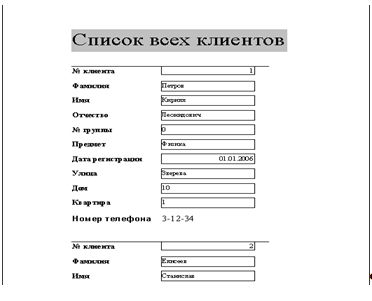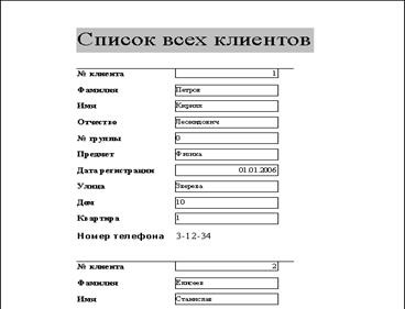 6.2.2 Заполнение таблицы “КЛИЕНТЫ”