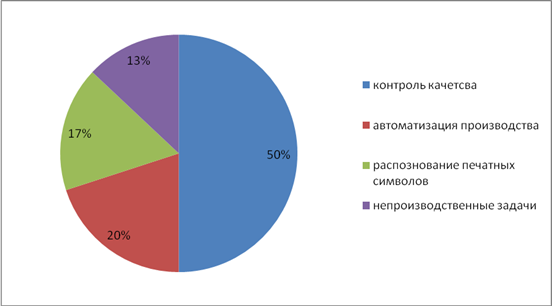 В статье Бобровского «Когда машины прозреют» [Бобровский, 2004] представлена следующая статистика областей, в которых востребованы системы машинного зрения:
