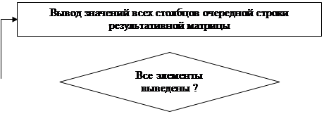 7. Выводит результат на экран, для чего выводит сначала нумерацию строки матрицы-результата, затем, через запятую, все столбцы данной строки матрицы.