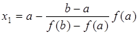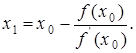 Далее за приближение корня принимается абсцисса x1, для которой y = 0: