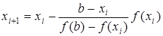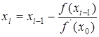 Существенным недостатком рассмотренного метода является необходимость вычисления производных функции для организации итерационного процесса. Если значение f ¢(x) мало изменяется на интервале [a, b], то для упрощения вычислений можно пользоваться формулой