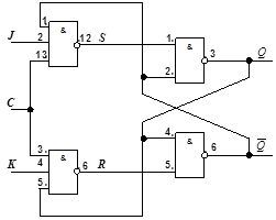 Рис.2. Схема однотактного JK -тригера на елементах 2"I-НІ".