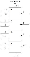 Рис. 3 Мікросхеми К155ЛА3 (4ел.2”І-НІ”) а ) - нумерація виводів К155ЛА3 і К155ТМ2; б ) - функціональна схема К155ЛА3.