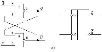 Рис. 4. Схема (а ) і умовне графічне позначення (б ) асинхронного RS -тригера з інверсними входами.