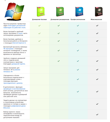 У нас в стране продаются четыре варианта Windows 7: «Домашняя базовая» (Home Basic), «Домашняя расширенная» (Home Premium), «Профессиональная» (Professional) и «Максимальная» (Ultimate). Рекомендовать базовую версию не очень хочется. В ней нет ни красивого интерфейса Windows Aero (только стандартная тема оформления без прозрачных стеклянных окошек), ни Windows Media Center, ограничена функциональность новой панели задач (о ней мы расскажем ниже), нет даже возможности объединить несколько компьютеров в локальную сеть, создав домашнюю группу. Максимальный объем поддерживаемой оперативной памяти — 8 Гб. Одним словом, людям, хоть немного разбирающимся в компьютерах, полноценно работать на этой обрезанной системе будет проблематично. Стоит такое счастье 4370 рублей за коробку. «Домашняя расширенная» версия уже намного интересней. Она поддерживает до 16 Гб памяти, в ней есть все то, что вырезали из базовой редакции, и стоит она 6970 рублей. Единственное существенное отличие «Профессиональной» версии от «Домашней расширенной» — возможность запускать программы в родной среде Windows XP. Проще говоря, можно параллельно основной ОС запускать ядро XP, что гарантирует безотказную работу всех приложений, написанных для старой системы. Звучит здорово, но на практике вряд ли понадобится — все программы и так совершенно спокойно работают на «Семерке». Функция может пригодиться только для какого-то старого узкоспециализированного софта, который очень редко встретишь на домашних компьютерах (потому «Профессиональную» версию и рекомендуют бизнес-клиентам). То же самое и с играми: таких, которые работали бы на XP и не работают на Windows 7, единицы Старые DOS-игры работают плохо, но и в Win XP с ними были большие проблемы. Для них лучше использовать эмулятор DOSBox, который, кстати говоря, всегда лежит на нашем диске в разделе Софт/Стандарт. Так что платить за эмуляцию Win XP лишние 3600 рублей («Профессиональная» редакция стоит 10 570 руб.) — сомнительное удовольствие. Остальные функции Pro-версии нужны скорее предприятиям, чем обычным пользователям: присоединение к домену, система шифрования данных EFS, поддержка нескольких процессоров (не путать с многоядерными процессорами) и оперативной памяти — вплоть до 192 Гб.