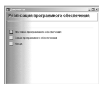 Форма «Документы» (рисунок 4) содержит элементы «Поставка программного обеспечения», «Заказ программного обеспечения».