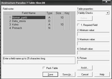 Рис 4.1.3 Таблиця "Паспорт партії"