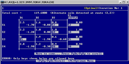 2) в случае дефицита – ввести фиктивного поставщика с недостающим объемом отправляемых грузов (элементы матрицы сij , связывающие фиктивные пункты с реальными, имеют значения, равные штрафам за недопоставку продукции).