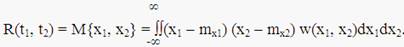 Спектрально-корреляционная модель оперирует с двумерной плотностью распределения вероятности w(x1 , x2 ), связывающей отсчеты случайного процесса, взятые в разные моменты времени x1 = x(t1 ) и x2 = x(t2 ). Если изменять t1 и t2 , то можно исследовать попарную связь всех отсчетов между собой и, в принципе, последовательно определить все связи, описываемые N-мерным законом распределения. В спектрально-корреляционной модели для описания этой связи используется корреляционный (второй смешанный центральный) момент: