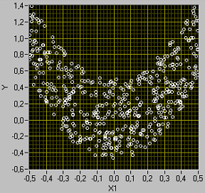 Пусть случайная величина Y = 4X1 2 + X2 , где X1 и X2 – независимые случайные величины, равномерно распределенные в интервале (– 1/2, 1/2). Ясно, что Y связана с X1 статистической зависимостью (см. рис. 2). Однако корреляционный момент