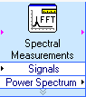 LabVIEW располагает разнообразными ВП для спектрального анализа (более 20 типов). Воспользуемся экспресс-ВП SpectralMeasurements (Рис. 5), в котором предусмотрена возможность усреднения (Averaging) и оконной обработки (Window) для уменьшения краевых эффектов.