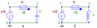 Электрические схемы RC- и RL-цепи с подсоединенными к ним источниками напряжения e(t) показаны на рис. 1.