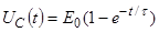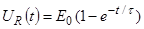 При скачке напряжения e(t) = E0 ·1(t) на входе RC-цепи происходит заряд конденсатора током i(t). По мере увеличения заряда на обкладках конденсатора увеличиваются напряжение на конденсаторе UC (t) и энергия электрического поля, накапливаемого в конденсаторе. Для увеличения энергии конденсатора внешние силы (э. д. с. источника) должны совершить продолжительную работу, преодолевая силу кулоновского поля конденсатора C и сопротивление резистора R. Поэтому напряжение на конденсаторе в RC-цепи меняется плавно, стремясь к величине скачка входного воздействия E0 :