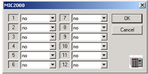 У цьому діалозі для кожного слоту контролера слід вказати тип застосовуваної плати ПЗО. Після цього автоматично настроюється обмін даними з цими платами. Оберіть для перших чотирьох слотів плати MIC 2718, MIC 2728, MIC 2732 таMIC 2752, як показано на наступному рисунку та натисніть кнопку “ОК” :