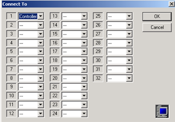 Двічі натисніть ліву кнопку миші на зображенні операторської станції. На екранні появиться діалог “C onnect To ” (“Під’єднати До” ). Виберіть з першого списку у цьому діалозі вузол Controller , як показано на рисунку: