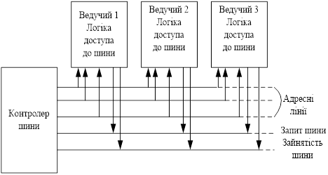 Системні ресурси розділяють кілька модулів, а проблему змагань при доступі до шини повинна вирішувати логіка керування системною шиною.
