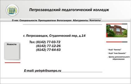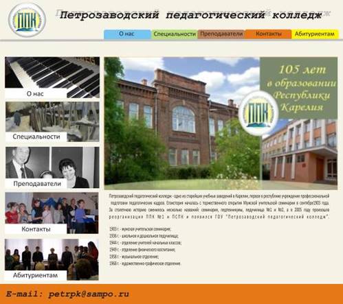 Дипломная работа: Электронная визитка ГОУ "Петрозаводский педагогический колледж"