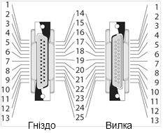 Рис. 1. Рознімач IEEE 1284-ADB-25 (DB (DataBus) – шина даних, 25 – кількість контактів)