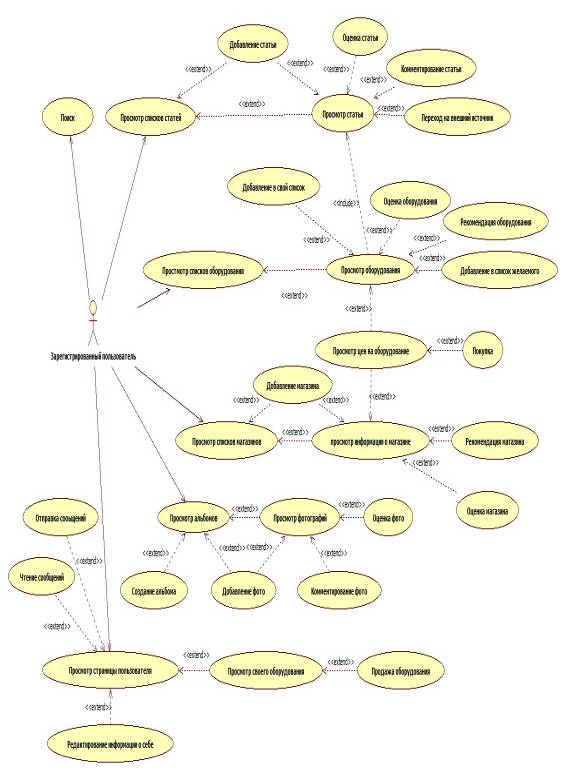 Рисунок 5 – Диаграмма вариантов использования для зарегистрированного пользователя