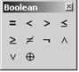 Блок уравнений и неравенств, требующих решения, записывается после ключевого слова Given (дано ). При записи уравнений используется знак логического равенства = , кнопка находится в Палитре Boolean.