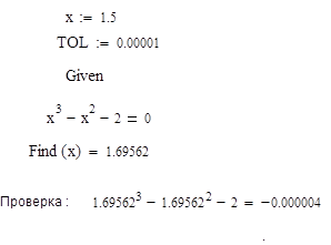| x3 -x2 –2 = 0 | Так записывается уравнение. При записи уравнений в решающем блоке используют знак логического равенства =