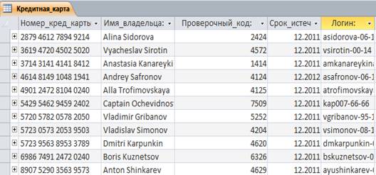 5. Кредитная карта. По каждой кредитной карте в БД хранятся следующие характеристики: