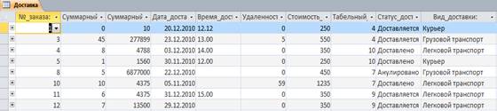 Таблица «Доставка»