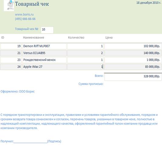 Запрос на получение товарного чека