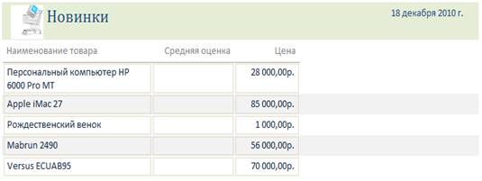 Отчет о новинках интернет-магазина