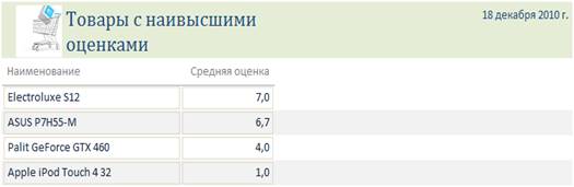 Отчет по самым рейтинговым товарам магазина