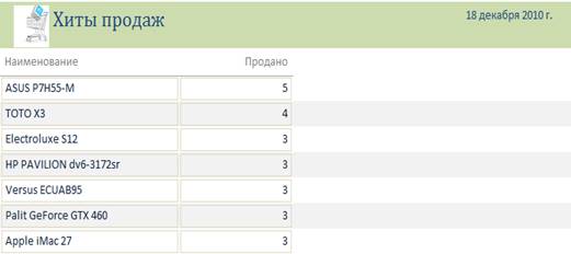 Отчет по самым популярным товарам магазина