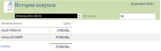 Запрос на историю покупок