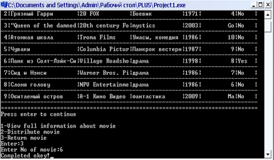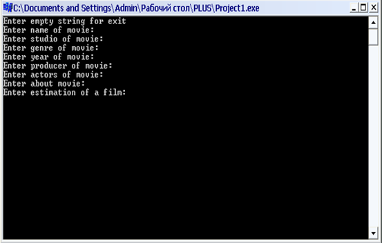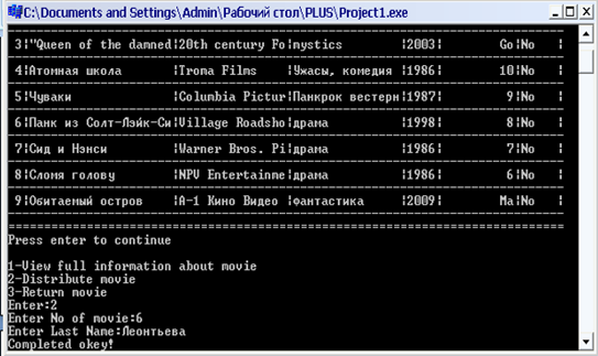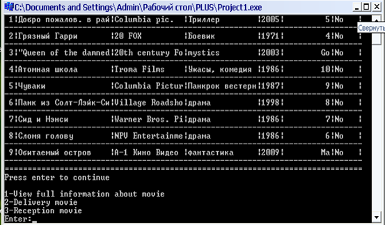 Розробка програмного забеспечення рішення задачі створення бази відеофільмів