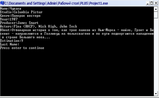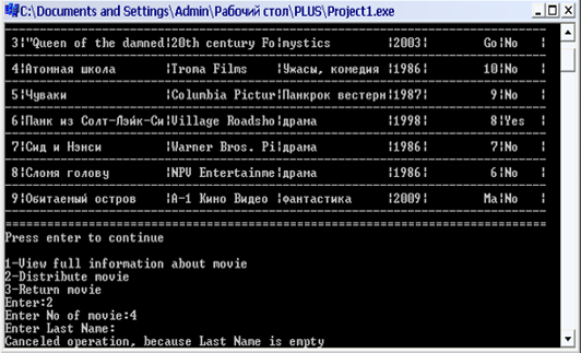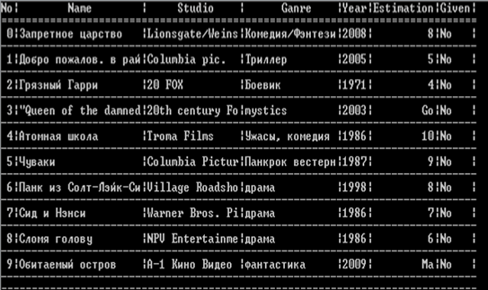 This term paper is devoted to realization of making the base of movies. Programmatic realization is carried out in programming C++ language in the environment C++Builder 6.