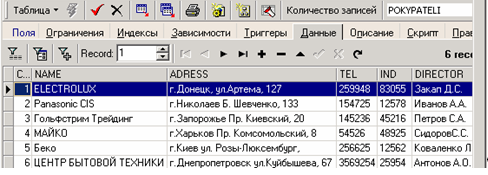 У цю таблицю будуть вводиться дані (Адреса покупця, телефон, поштовий індекс, адреса, ФІО директора).