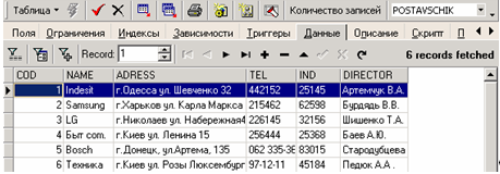 Код; Найменування; Адреса; Телефон; індекс; Директор. |