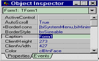 На рРис. 4.1 зображений інспектор об’єктів, цей інструмент представляє з себе окреме вікно, де ви можете в період проектування програми встановлювати значення властивостей і подій об'єктів (Properties & Events).