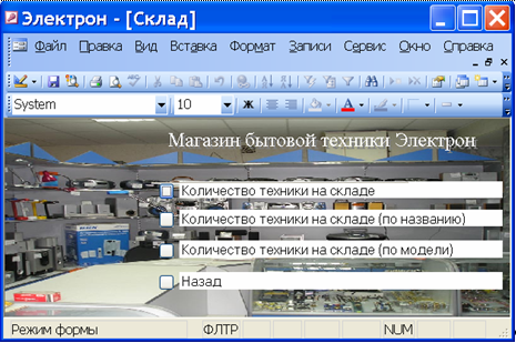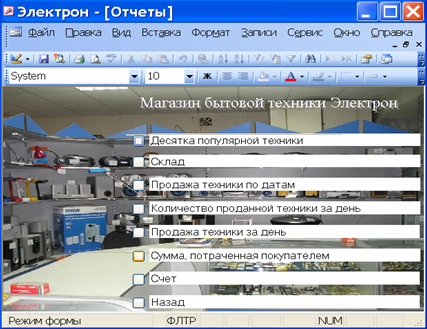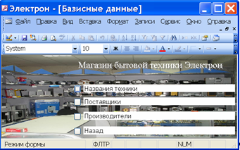 Темою моєї курсової роботи розробка бази даних магазину побутової техніки «Електрон». Створена програма володіє рядом переваг: