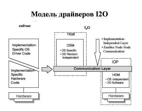 Одна из целей создания открытой архитектуры I2 O - обеспечение возможности легкого подключения устройств и написания драйверов, расширяющей возможности для создания новых систем.