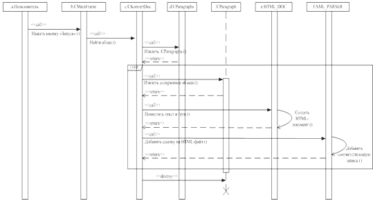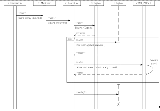 Рис. 2 - Диаграмма последовательностей для прецедента «Извлечение структуры документа»