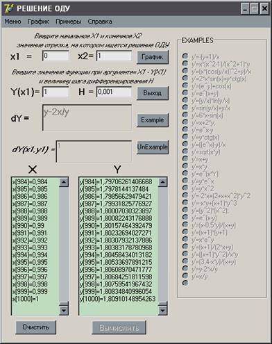 4.2 Описание программы ” РЕШЕНИЕ ОДУ “