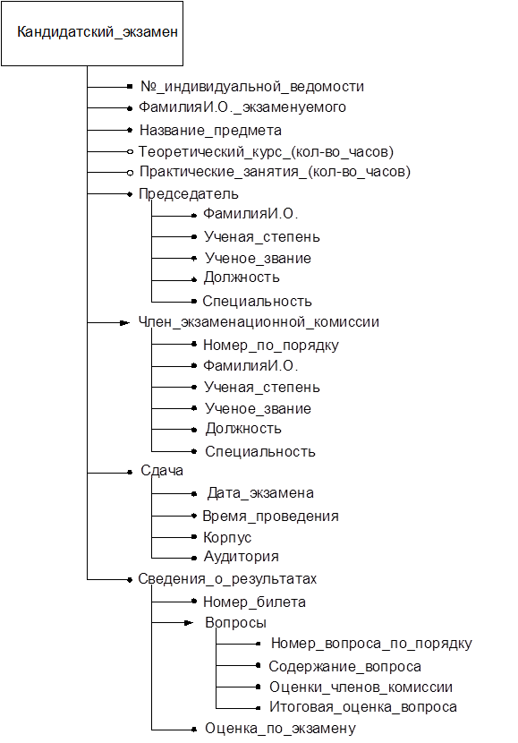 Особенности автоматизированной реализации функции состоят в том, что в базе данных размещаются сведения об экзаменуемом, номере билета, оценке по каждому из вопросов, итоговой оценке кандидатского экзамена, членах комиссии (с указанием их ученой степени, ученого звания, занимаемой должности специальности), позволяющие обеспечить соответствие нормам «Положения о подготовке научно-педагогических и научных кадров в системе послевузовского профессионального образования в Российской Федерации».