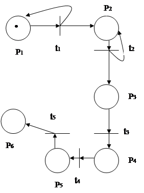 Все места являются безопасными, так как для любого места p: M(p) £1. Следовательно сеть безопасная (это значит, что все разметки состоят из 0-ей и 1-иц).