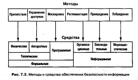 Методы и средства обеспечения безопасности информации показаны на рис. 2. Рассмотрим основное содержание представленных методов защиты информации, которые составляют основу механизмов защиты.