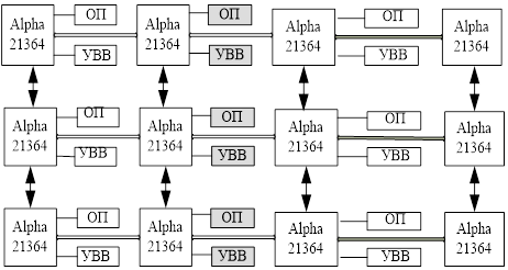 Малюнок 3. Схема з'єднання 12 мікропроцесорів 21364 в ММПС