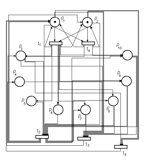 Таким образом, данная сеть является безопасной, ограниченной, живой (потенциально), устойчивой.