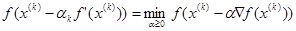 Способ определения ak и s(xk ) на каждой итерации связан с особенностями применяемого метода. Обычно выбор ak осуществляется путем решения задачи минимизации f(x) в направлении s(xk ). Поэтому при реализации градиентных методов необходимо использовать эффективные алгоритмы одномерной минимизации.
