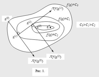 Важность прямых методов неоспорима, т.к. в практических задачах информация о значениях целевой функции является единственно надежной информацией, которой располагает инженер. Однако, если существует и непрерывны целевая функция f(x) и ее первые производные, aтакже они могут быть записаны в аналитическом виде (или с достаточно высокой точностью вычислены при помощи численных методов), то целесообразно использовать методы, основанные на использовании градиента целевой функции.