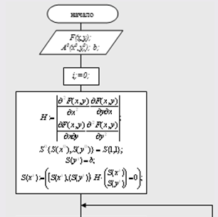 Матрица вторых производных Ñ2F(x) – это симметричная квадратная матрица порядка n вторых частных производных функции F(x). Эту матрицу называют матрицей Гессе и обозначают H(x) = Ñ2F(x). Ее элемент, расположенный на пересечении i-й строки и j-го столбца, равен: