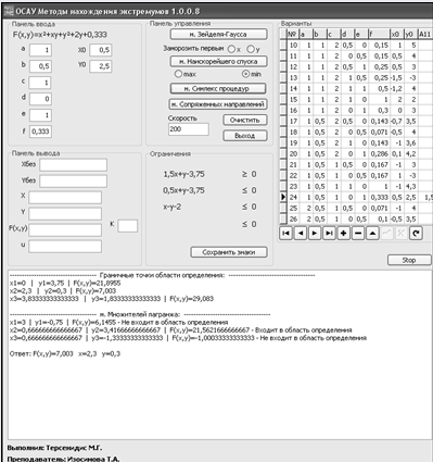 2. Найти условный экстремум этой же функции f(x,y) методом симплексных процедур при наличии ограничений: